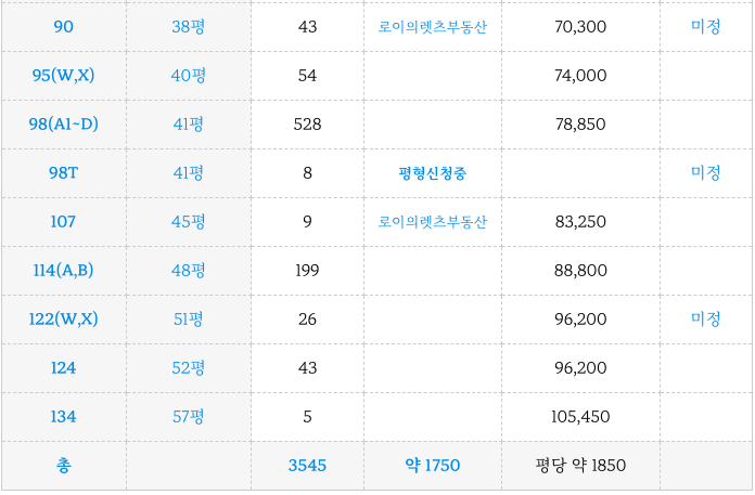 아래 감정평가액의 순위와 타입별 세대수 등을 참고 하시면 좋습니다.