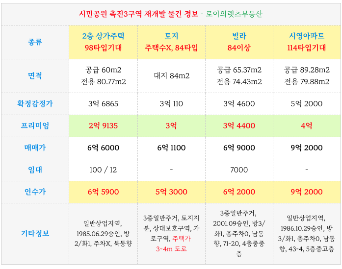 시민공원 촉진4구역 재개발 물건도 같이 소개해 드립니다.