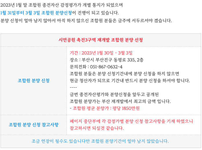 부산 촉진3구역 재개발 P2.9 매물과 분양신청방법, 체크사항
