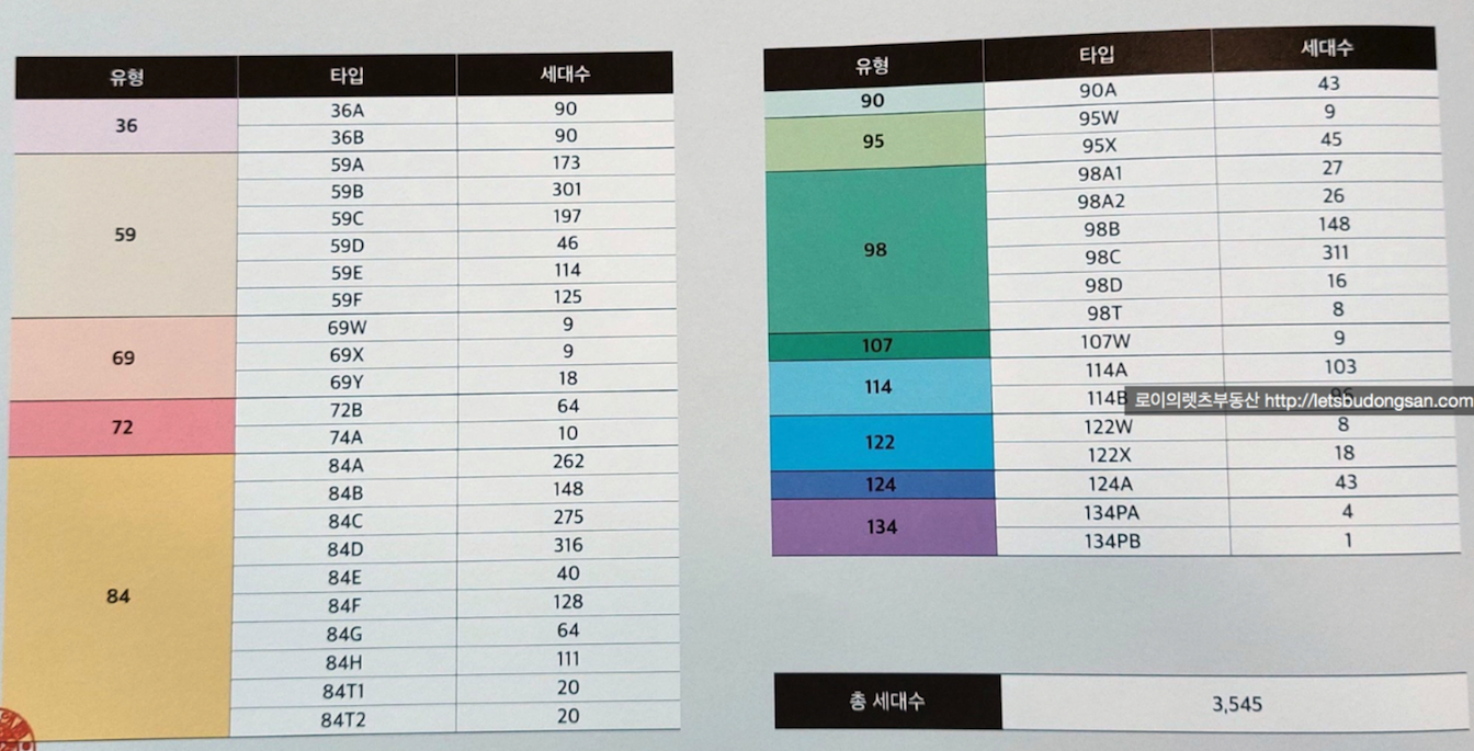 90타입 이상이 916세대, 84타입이상이 2299 세대로