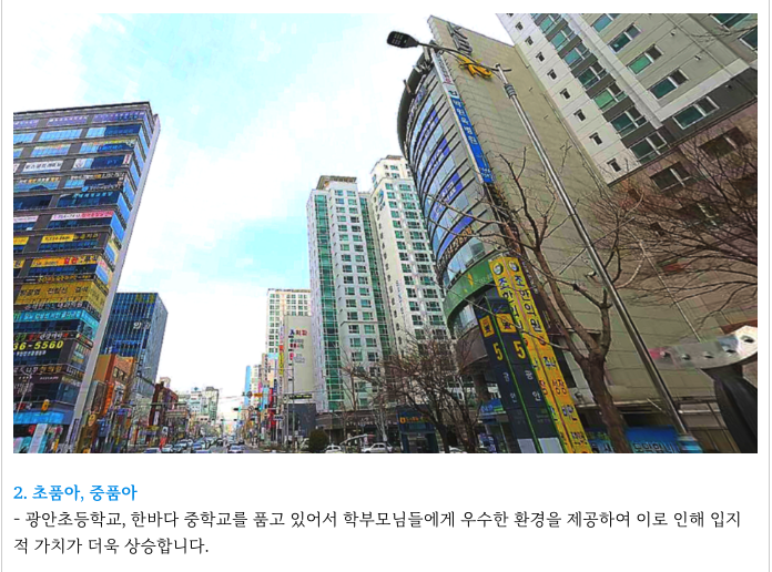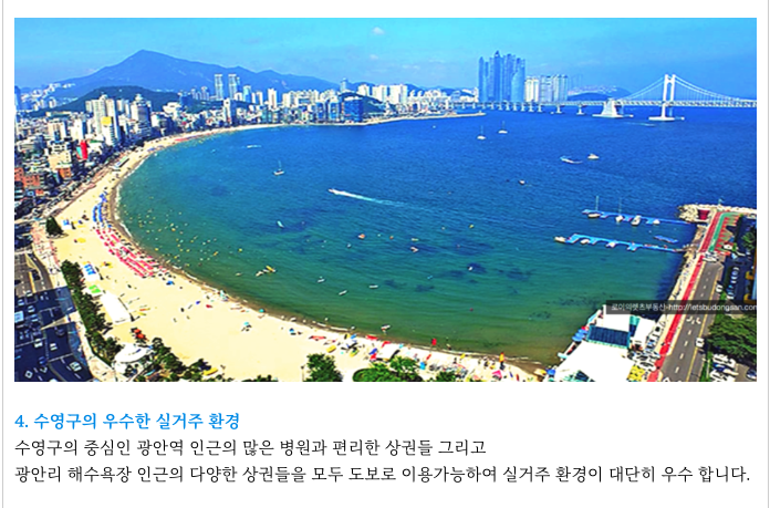 - 수영구 중심 광안동, 광안리 해수욕장, 주변시세 높은