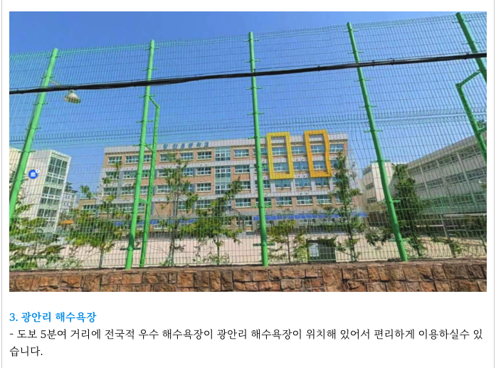 광안초등학교, 한바다 중학교를 품고 있는 초,중품아의 장점으로 입지를 더욱 빛나게 하고 있으며