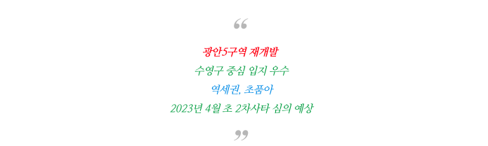 수영구 광안5구역 재개발 4월 2차사타 예상 & 1.25 인수가 작은 물건