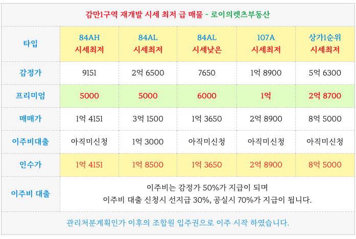 감만1구역 재개발 각 타입별 매물(~p3000부터)