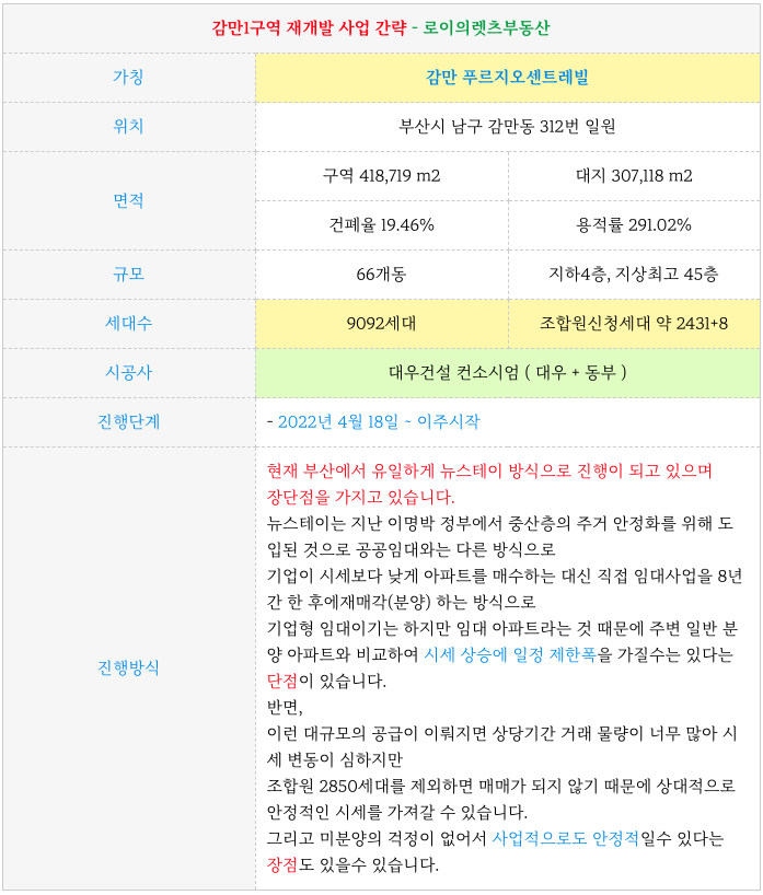 감만1구역 재개발의 특징을 다시 한번 간략히 정리드리겠습니다.