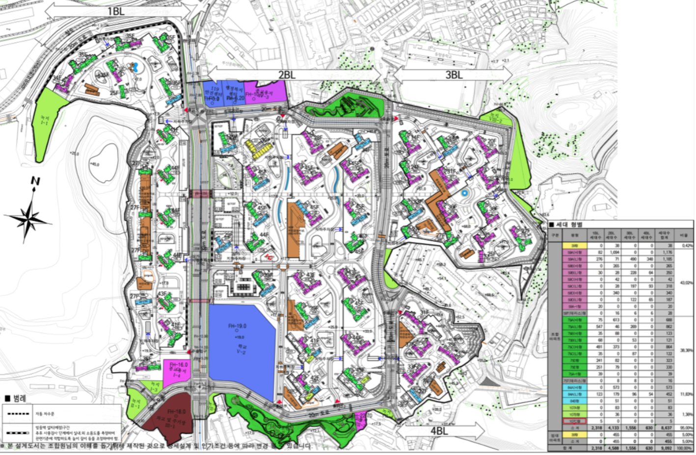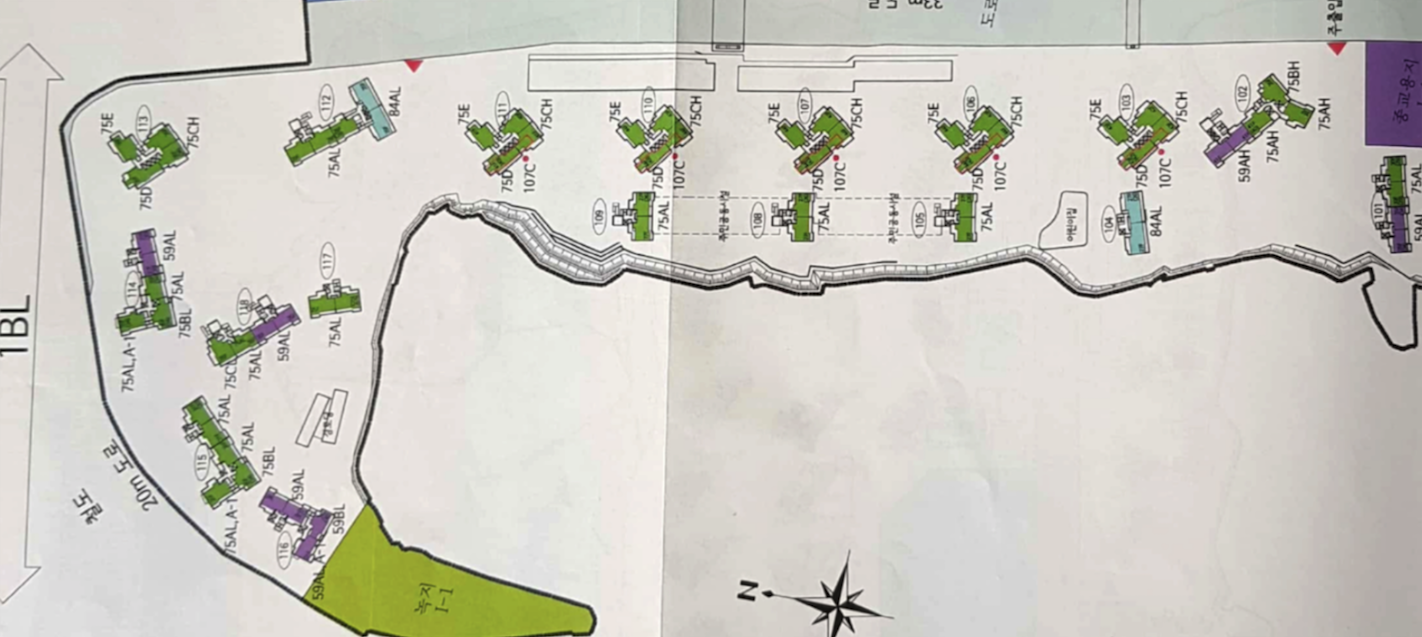 단지가 큰 만큼 그 타입 역시 다양합니다만 각 배치도를 보며 59, 75, 84, 107로 이해하시면 됩니다.