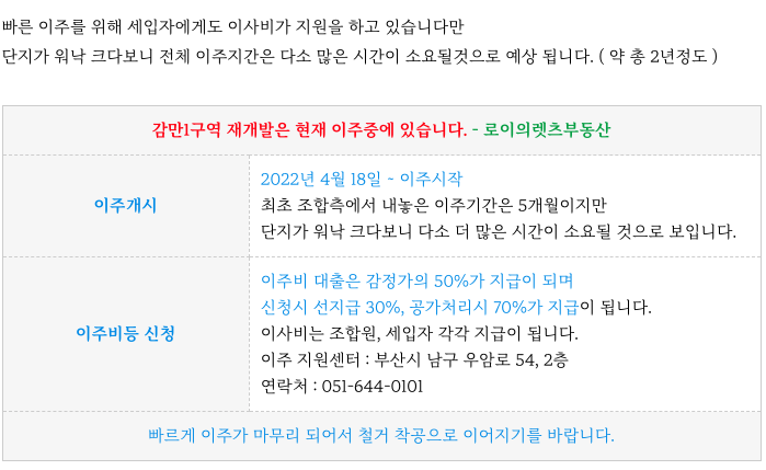 안녕하세요. 로이의렛츠부동산 ( 제이에이케이 부산 부동산중개법인 ) 입니다. 오늘은 이주중인 감만1구역 ...