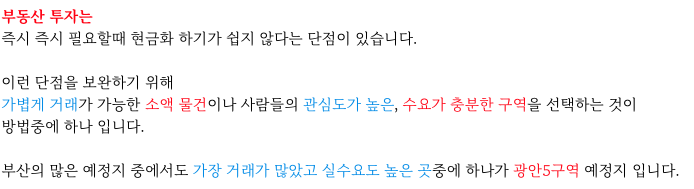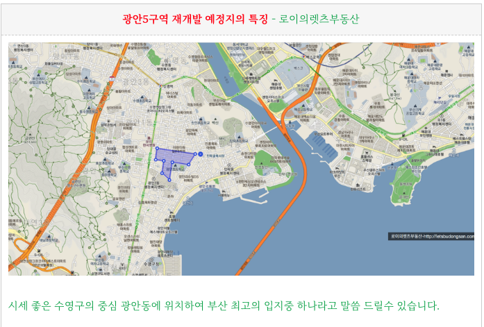 광안5구역 재개발 예정지의 특징 들을 간략히 정리하였습니다.