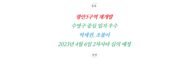 광안5구역 재개발 예정지 2차 사타심의 일정 소식 & 인수가 소액 신축 급매 물건