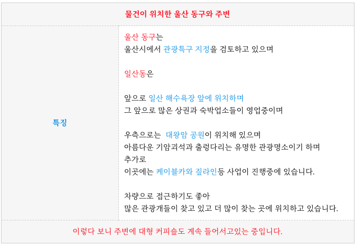 울산 동구 바닷가 아름다운 커피숖, 브린처 카페 상가 건물 매매 물건 정보 정리 드립니다.