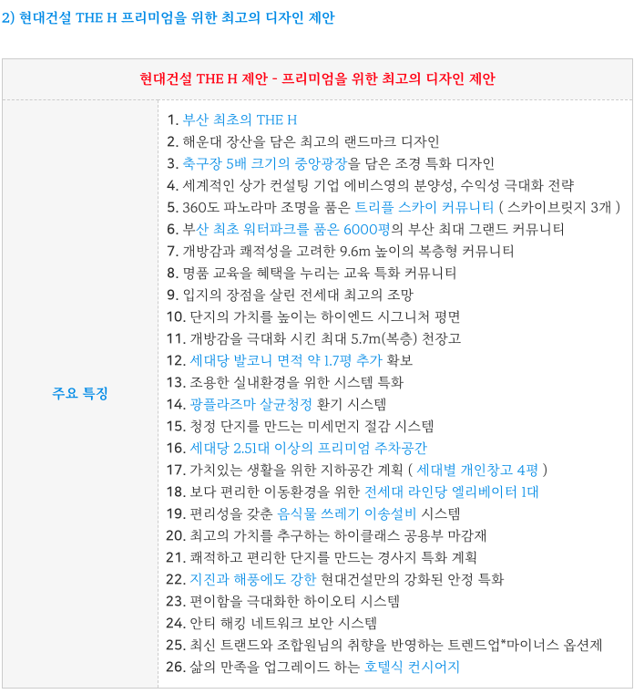 [ 시공사 현대건설 ( THE H ) 의 제안 내용 ]