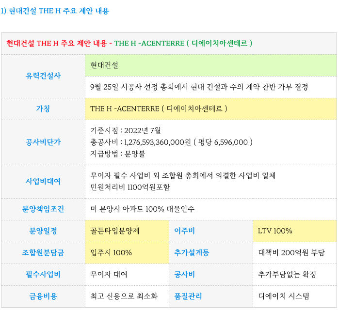 시공사 현대건설 ( THE H ) 의 제안 내용을 간략히 정리해 드립니다.