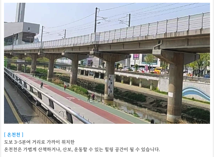 도보 5분여 온천천이 위치하고 있어서 휴식, 산책, 운동하기에도 좋으며