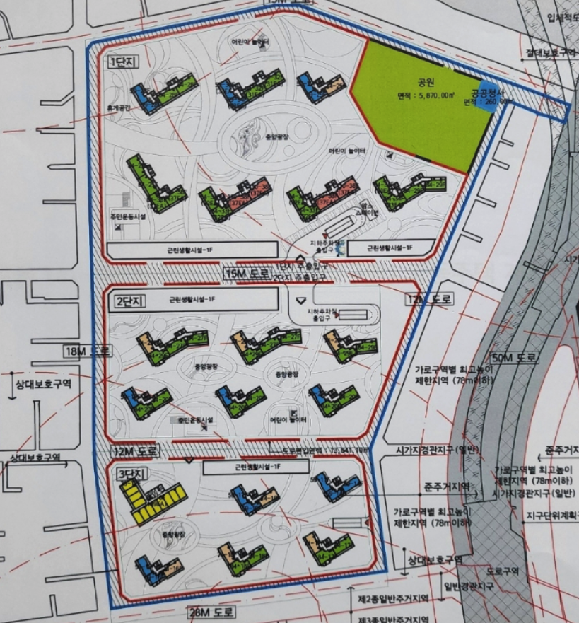 전체 약 1600여 세대의 평지 아파트 대단지로 진행될 예정 입니다.