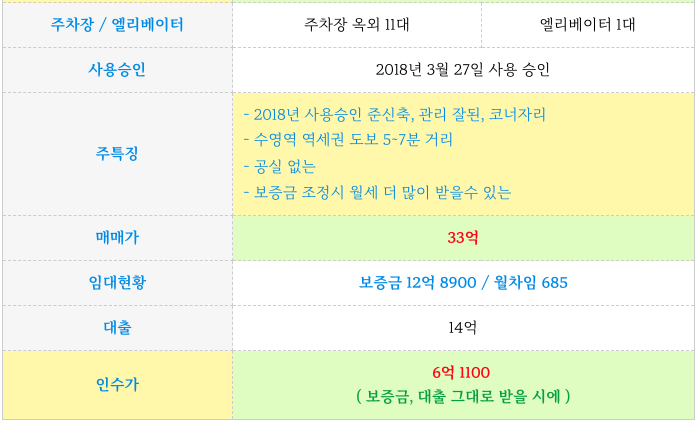- 수영역 역세권으로 2018년 승인 준신축 코너자리 에 있으며