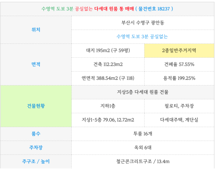 수영역 역세권 준신축 다세대 원룸 건물 매매 물건 정보 정리 드립니다.