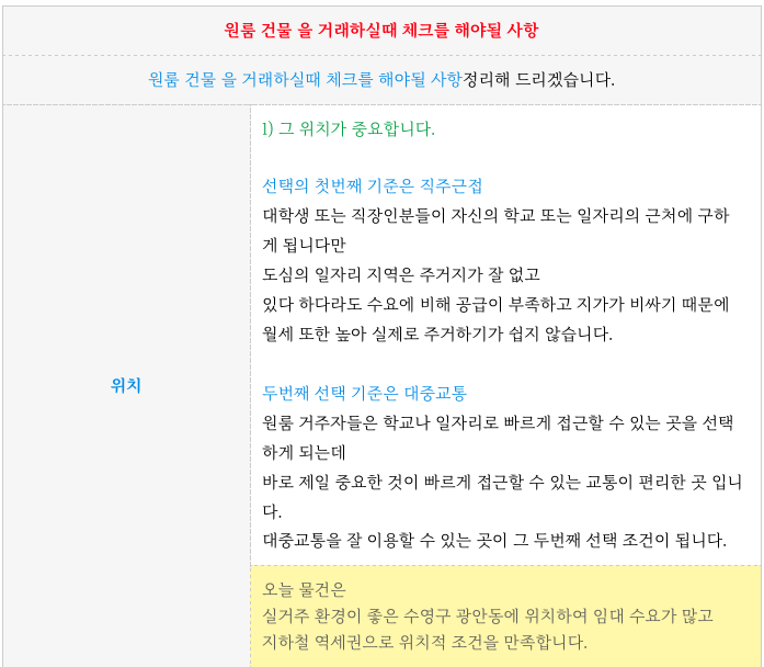 공실없이 운영을 위한 필요부분으로 원룸 건물 체크 내용도 정리 드리오니 참고 하시면 좋습니다.