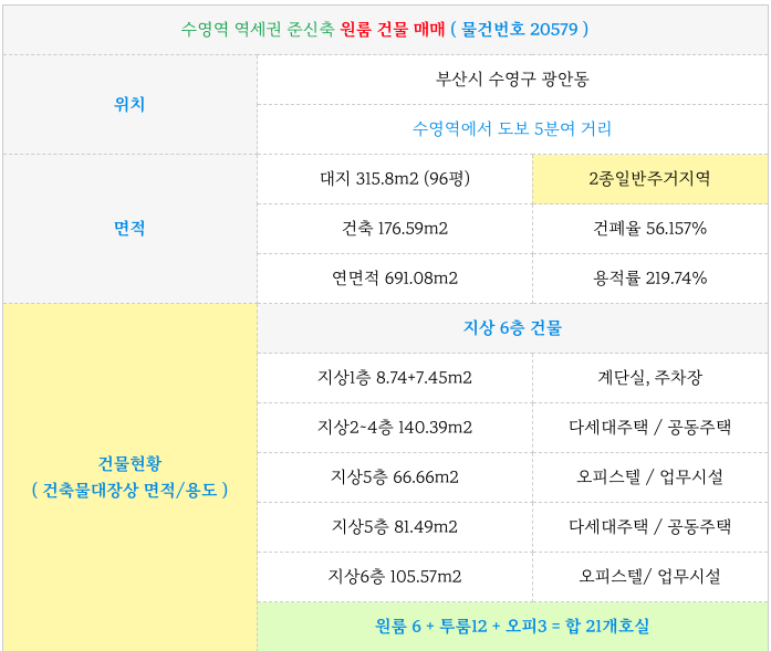 ( 부산 원룸통매매 ) 수영 역세권 공실없는 원룸 건물 빌딩 매매