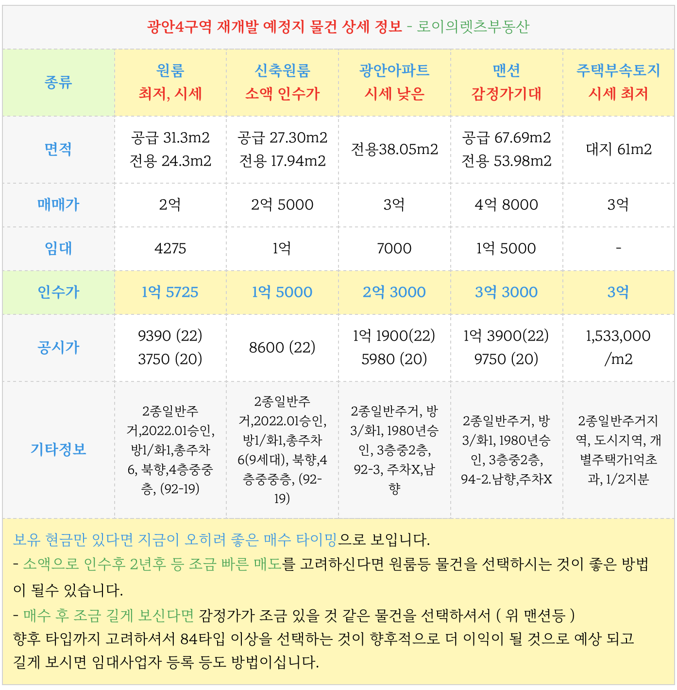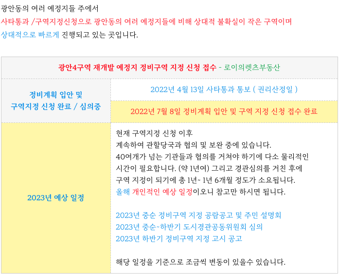 수영구 광안4구역 재개발 소액매물(1.5) & 2023예상일정