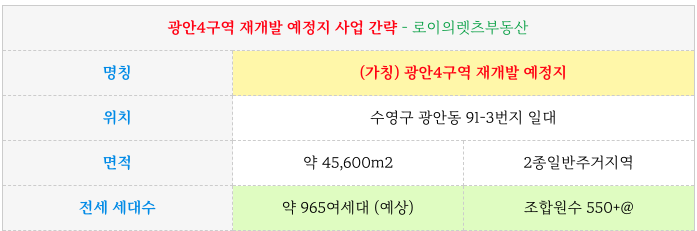 광안4구역 재개발 예정지의 추가적인 정보는 아래 페이지를 참고 부탁드립니다.