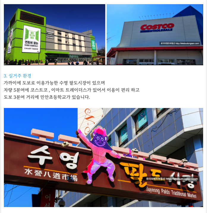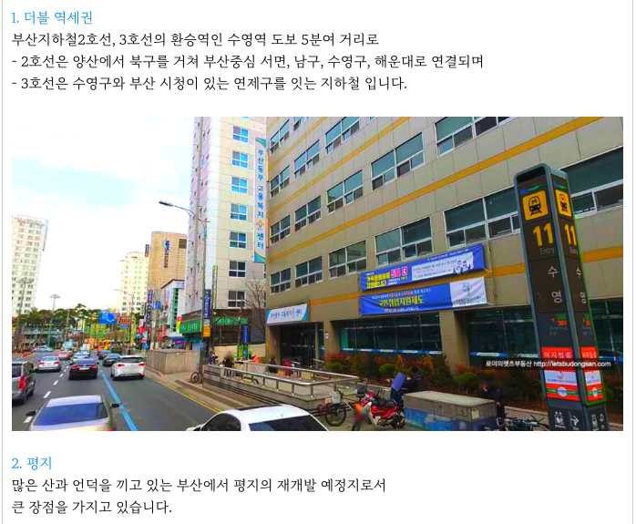 부산 지하철 2호선, 3호선의 환승센터인 수영역의 도보 3분여 더블 역세권 이며