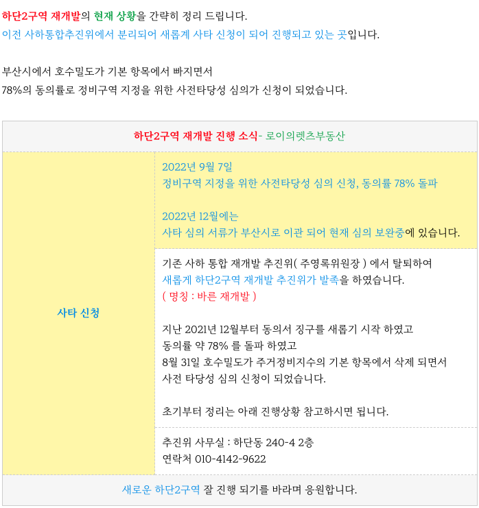 하단2구역 재개발 예정지 의 현재까지의 진행 상황 등 추가 정보는 아래 페이지를 참고 부탁드립니다.