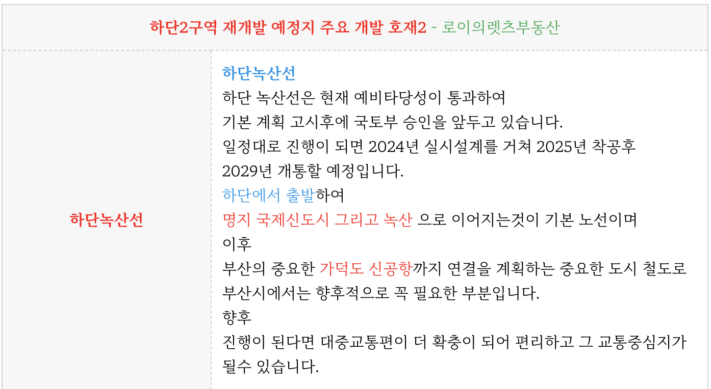 하단2구역 재개발의 가장 중요한 도시철도 개발 및 주요 개발 호재들을 다시한번 정리 드립니다.