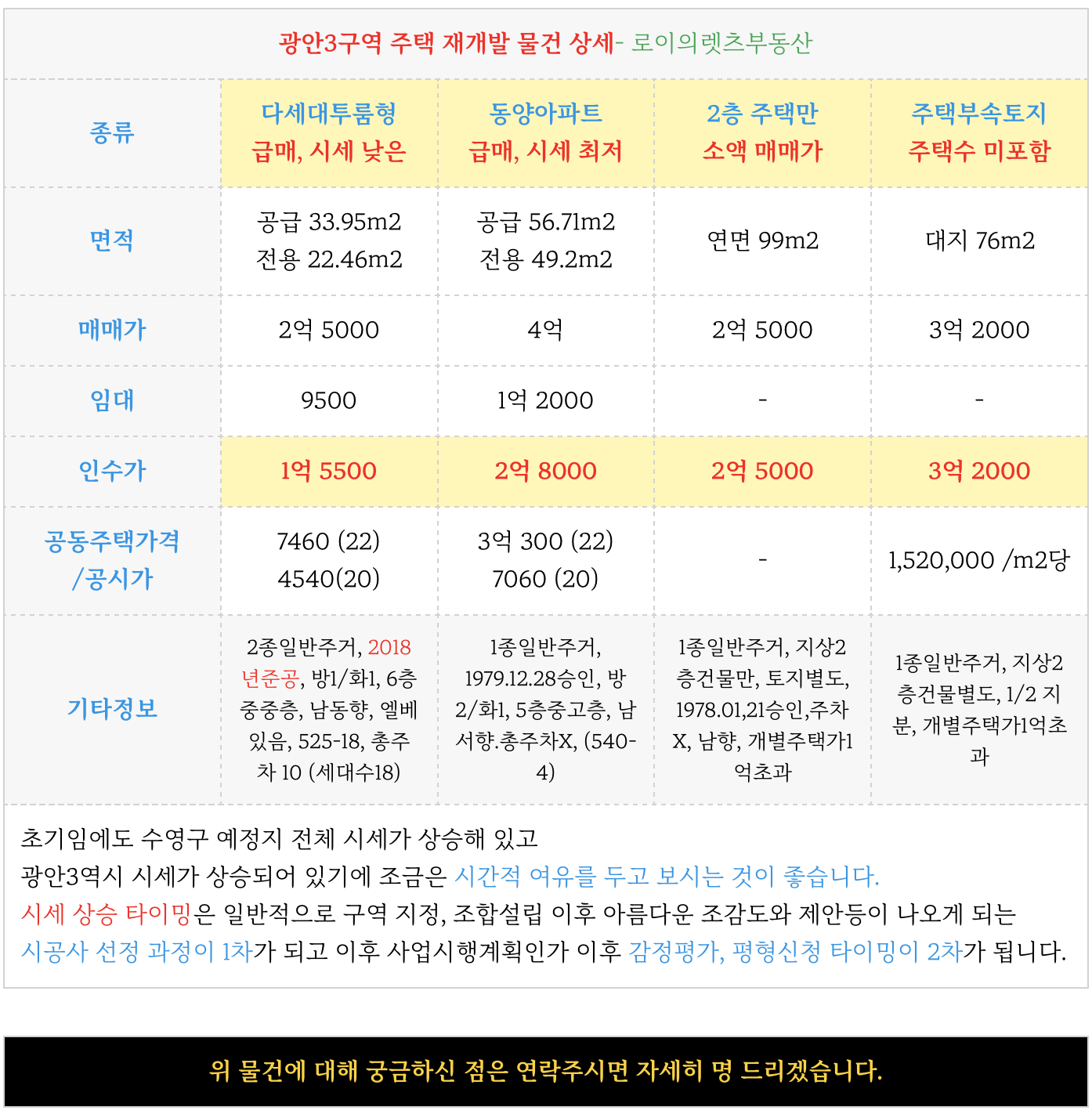 | 광안3구역 재개발 최근 진행 소식 업데이트 및 시세 최저 매물들 (0) | 2023.04.22 |