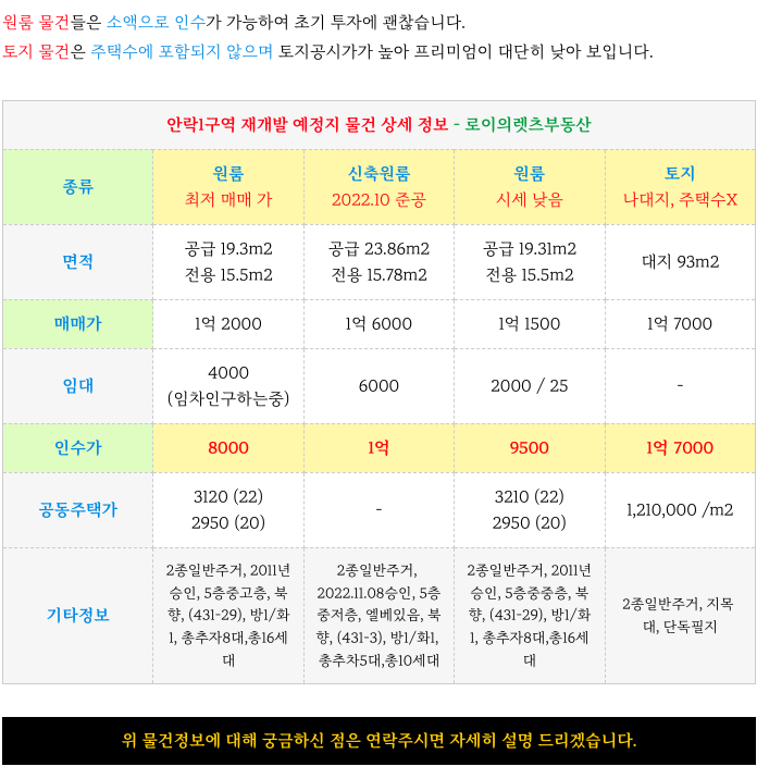 안락1구역 재개발 예정지의 현재 가능한 소액 물건들을 소개해 드리고 구역 설명 이어서 드리겠습니다.