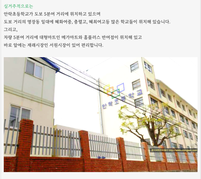 교통좋고 실거주 좋은 동래구에 위치하고 있는 것이 가장 큰 장점 입니다.