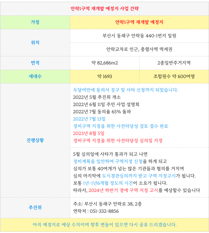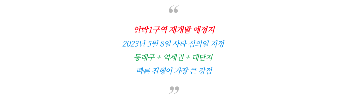 동래구 안락1구역 재개발 사타 심의 일정과 현 가능 소액 매물 정보를 소개해 드리겠습니다.