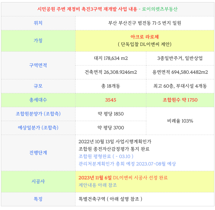 새로운 시공사로 선정된 DL이엔씨 제안 내용을 간략히 정리 드립니다.