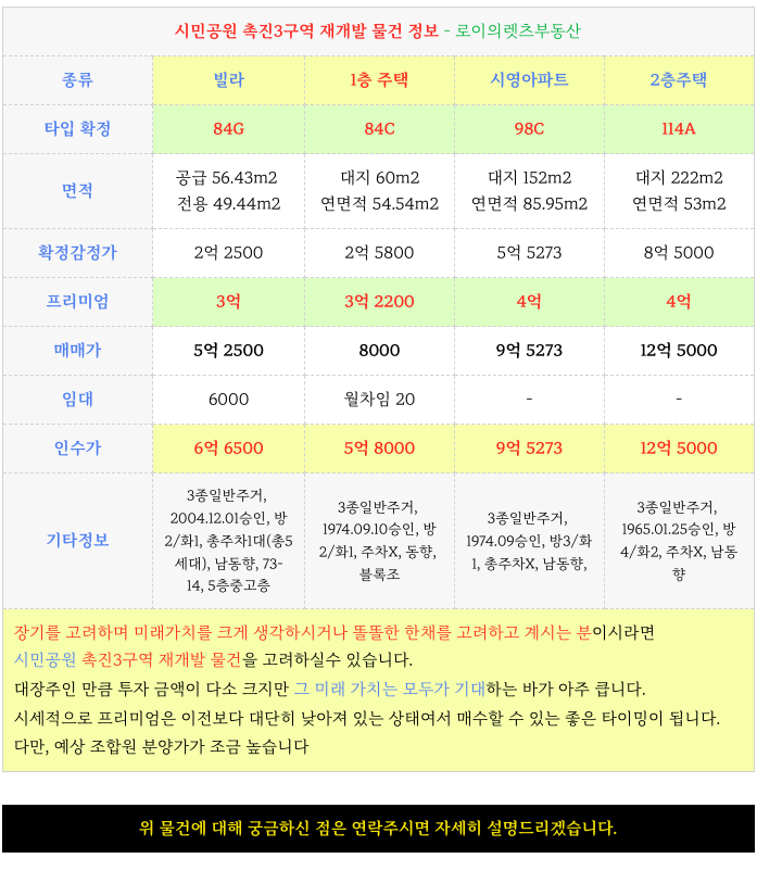 내륙대장 촉진3구역 재개발 관처총회준비 & 각 타입별 매물 정보