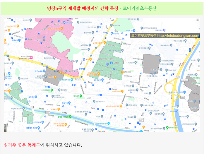 명장5구역 재개발 예정지의 간략한 특징을 정리하여 드립니다.