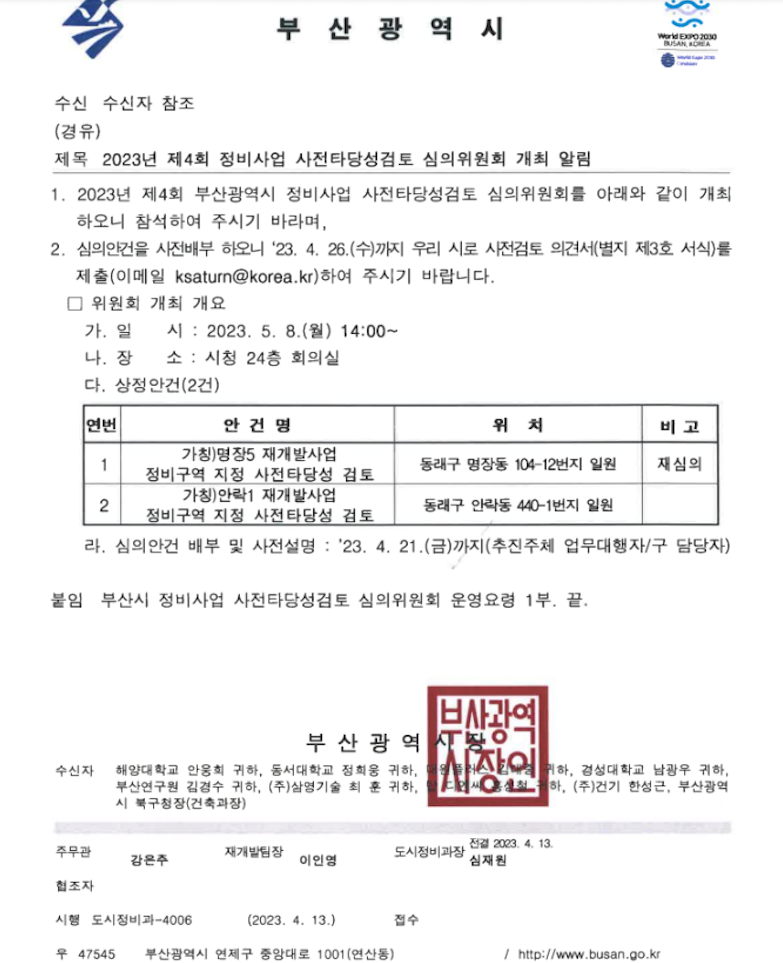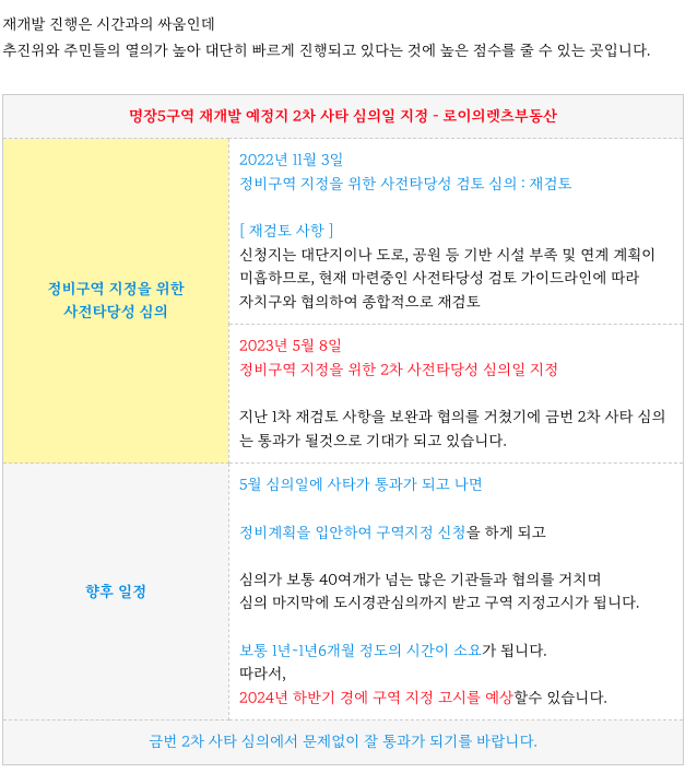 명장5구역 재개발 예정지 는 2023년 5월 8일 이제 사타심의 일정이 잡혔습니다.