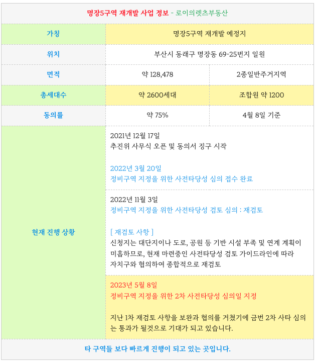 동래구 명장5구역 재개발 예정지의 노후도 등 추가 정보는 아래 페이지를 참고 부탁드립니다.