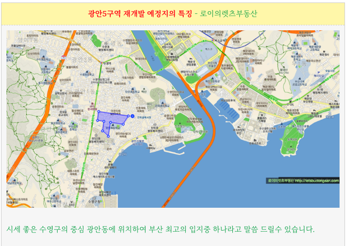 광안5구역 재개발 예정지의 특징 들을 간략히 정리하였습니다.