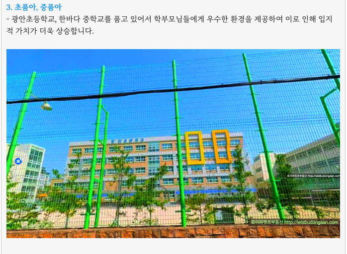 광안초등학교, 한바다 중학교를 품고 있는 초,중품아의 장점으로 입지를 더욱 빛나게 하고 있으며