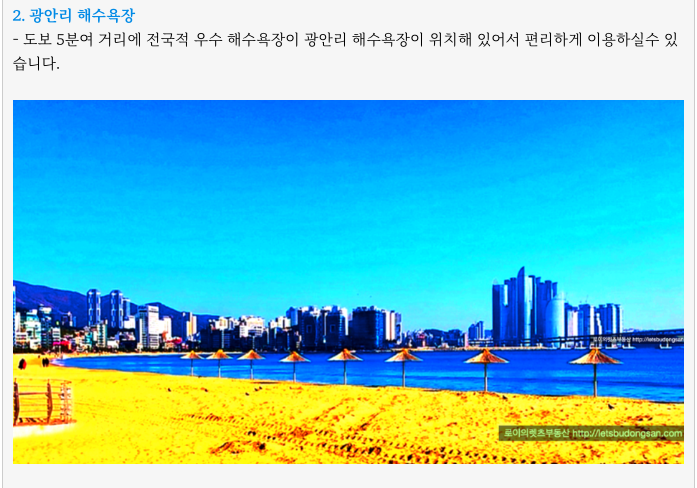 - 수영구 중심 광안동, 광안리 해수욕장, 주변시세 높은