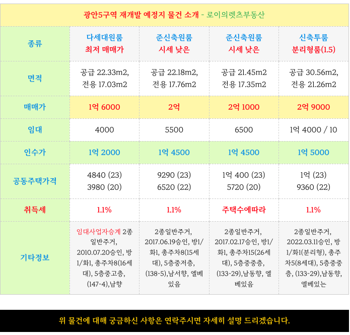광안5구역 재개발 예정지의 인수가 최저 물건 들을 소개해 드리고 구역 설명 이어서 하겠습니다.