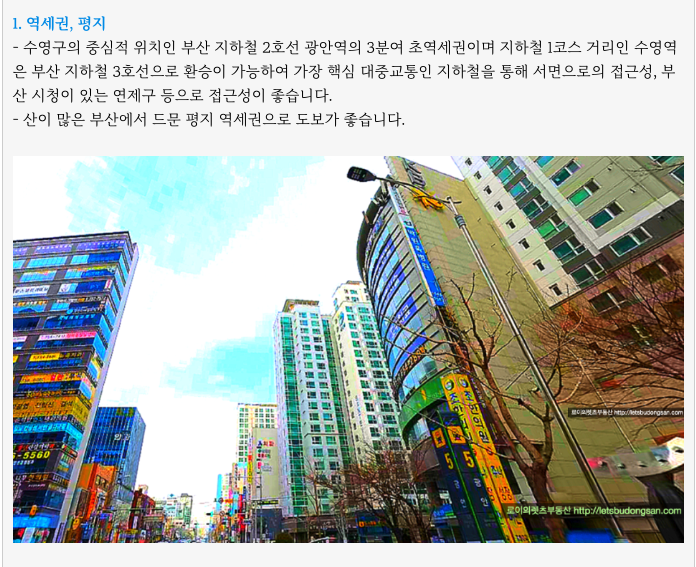 부산에서 가장 시세 좋고 핫한 곳중 하나인 수영구