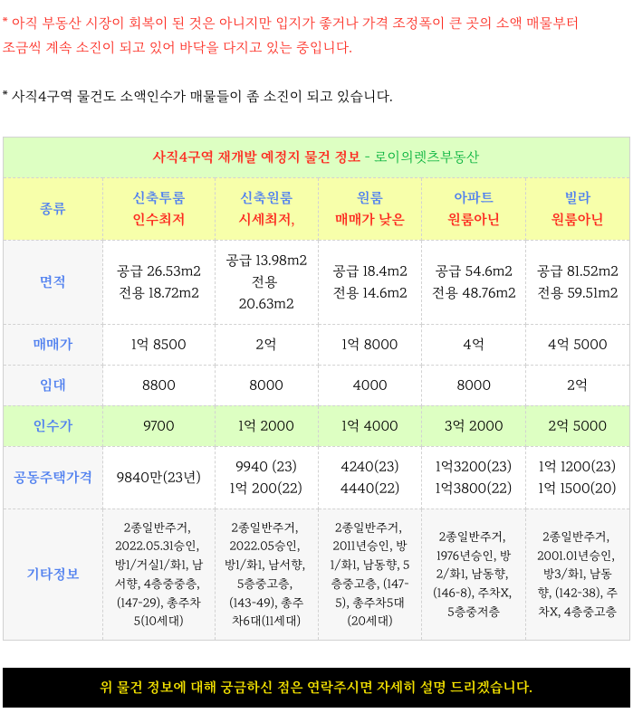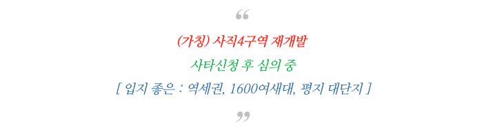 (가칭) 사직4구역 재개발 소액 물건 정보 업데이트 하여 소개해 드리겠습니다.