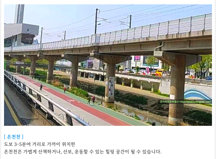 도보 5분여 온천천이 위치하고 있어서 휴식, 산책, 운동하기에도 좋으며