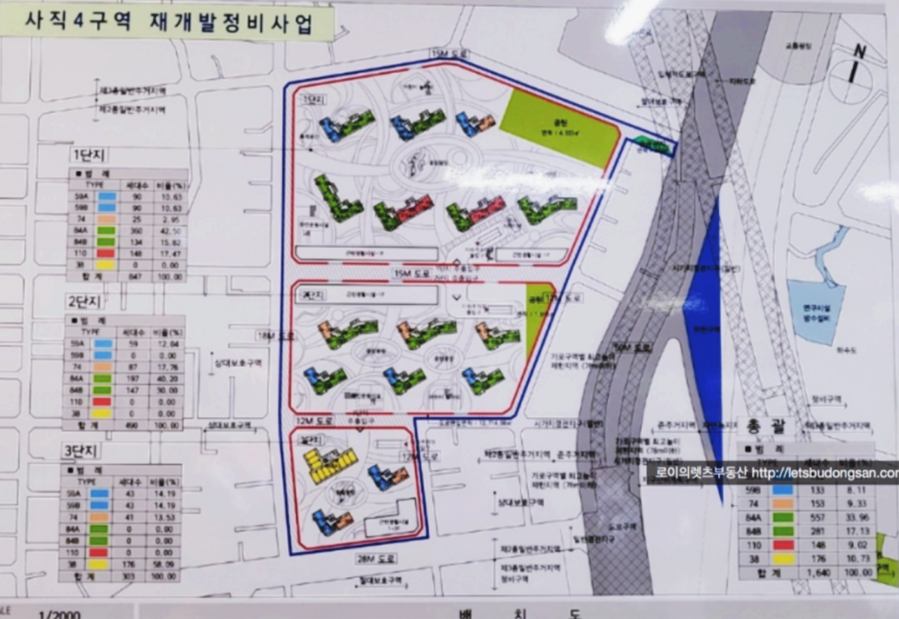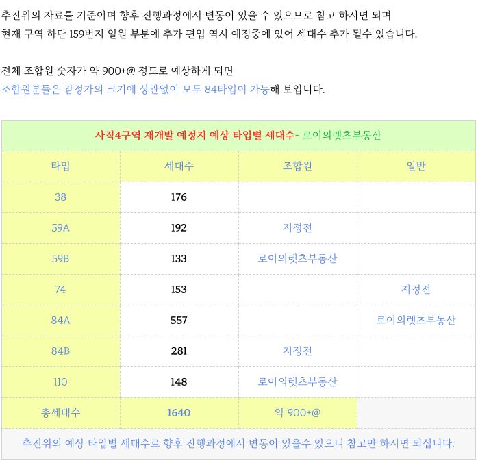 사직4구역 재개발의 현재 추진위에서 밝힌 예상 타입별 세대수 입니다.