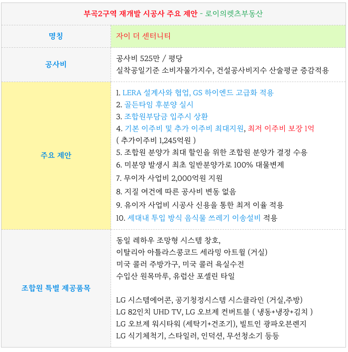 부곡2구역 재개발 시공사 GS건설의 주요 제안 내용 입니다.