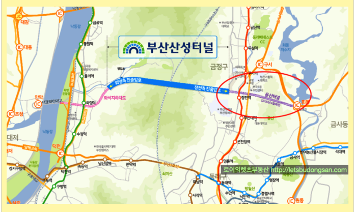 - 대단지 브랜드 아파트, 산성터널, 윤산터널, 경부선