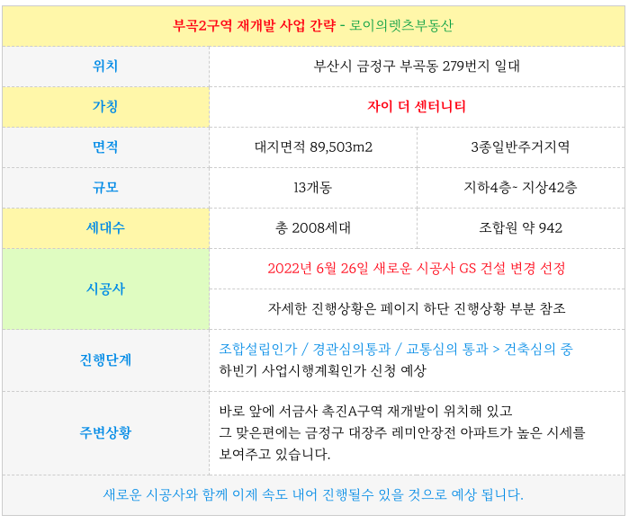 부곡2구역 재개발의 특징을 다시 한번 정리 드립니다.