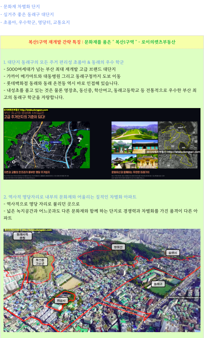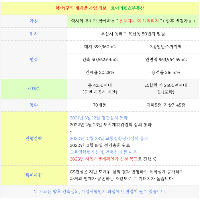 동래구 복산1구역 재개발 의 특징을 다시 한번 간략히 정리하였습니다.