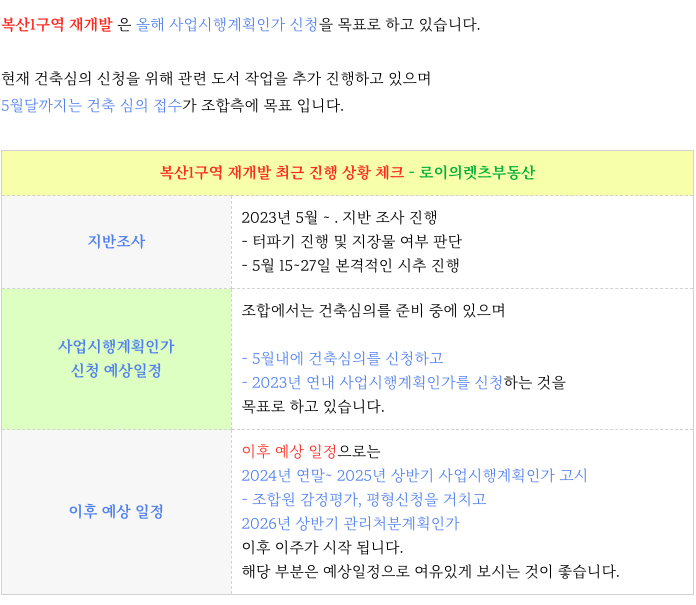 복산1구역 재개발 의 현재까지의 진행상황을 정리 등 추가 정보는 아래 페이지를 참고 부탁드립니다.