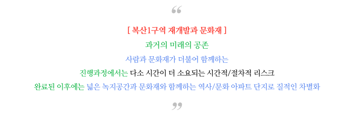사람과 문화재가 더불어 함께하는 재개발 구역이라고 할 수 있습니다.